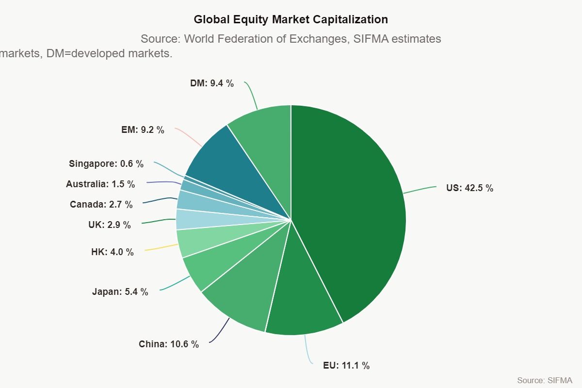 The U.S. equity markets stand at a whopping $46.2 trillion — that’s over 40% of the global equity market cap. In fact, the U.S. equity markets are 3.8x the next largest market, the European Union.