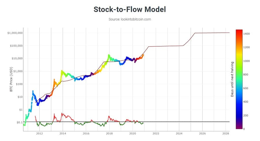 Bitcoin's stock to flow model is said to influence cryptocurrency market trends. Image via Lookintobitcoin However, if it becomes possible to tokenize the ETH staked on Ethereum 2.0, this will allow you to sell your staked ETH by proxy when the price is right. Obviously if you are in it for the long haul, the question of staking or not should be a no brainer. Note that this is not financial advice, and the decision to stake is ultimately yours to make.