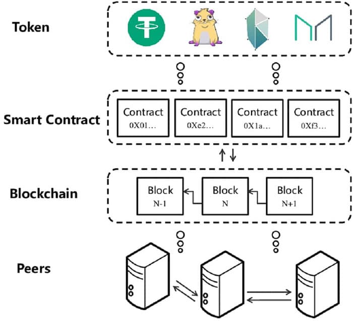 A more technical overview of the Ethereum blockchain. Image via Researchgate Instead, applications on Ethereum are stored across the multiple computers that are connected to its blockchain network. This means that it is virtually impossible for any applications made on Ethereum to experience downtime. It also makes it hard for regulators to restrict access to them or shut them down.
