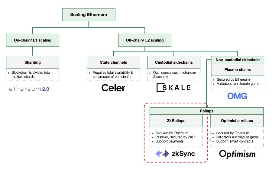 An overview of a few scaling solutions for Ethereum. Image via Twitter Layer-2 scaling solutions will bump Ethereum’s transactions per second from 15 to anywhere between 1-4000. If are curious to know how this is accomplished or want to know about some layer 2 projects, check out OMG Network and Loopring.