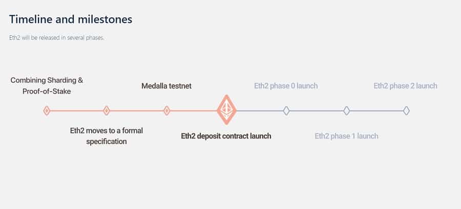 The roadmap for Ethereum 2.0 and where we are. The rollout Ethereum 2.0 is divided into multiple stages. Even though the Ethereum 2.0 network technically went live on December 1st, there is still a long way to go before it is fully operational. In other words, you will not be seeing any applications or DeFi protocols on Ethereum anytime soon.