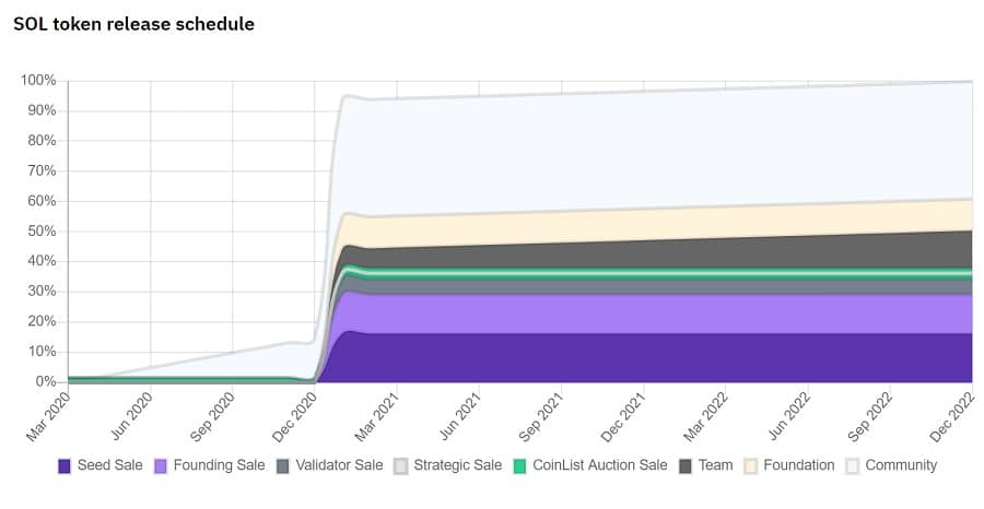 Token emission schedules such as this one for Solana's SOL token can have a negative impact on price. Image via Binance Basic economics dictates that this massive supply of ETH being sold at once could crash its price. This would likely be temporary however, and developers at Ethereum could also mandate a sort of cool-down period wherein these validators would not be able to move more than a certain amount of ETH at one time.
