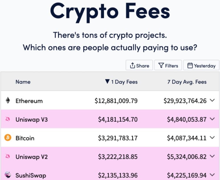 4 of the top 5 are Ethereum Based Projects Image via newsletter.banklesshq Value Settled- This is a measure of how much economic value is being settled on the blockchain. Blockchains are settlement layers and the amount of value settled on a blockchain indicates whether or not the network is being used, facilitating economic activity. This shows that more people are using Ethereum to settle transactions than Bitcoin.