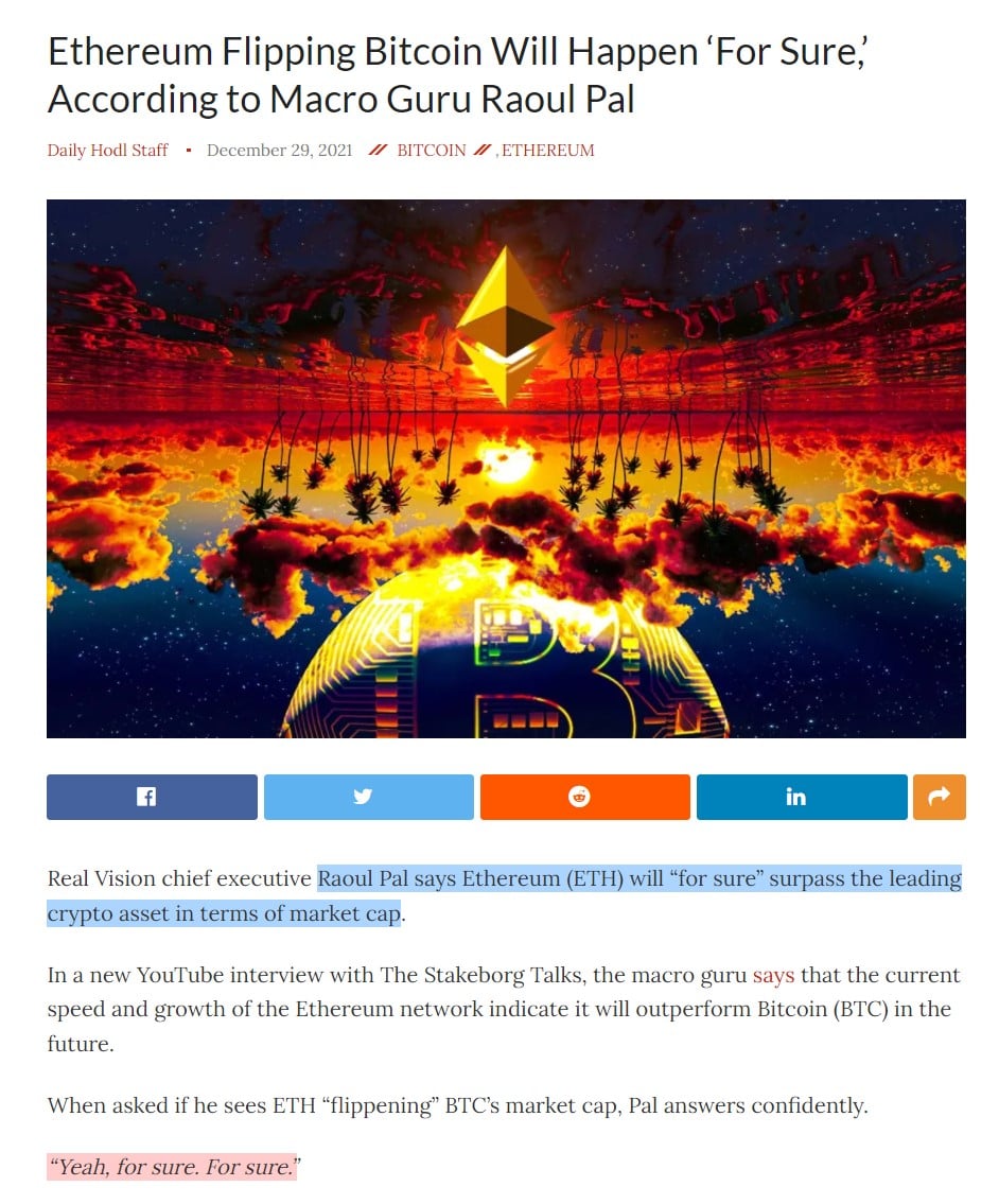 Highly Respected Macro Investor and CEO of Real Vision is Confident in the Flippening Image via dailyhodl Another big catalyst for Ethereum that cannot be understated is the impact of smart-contract functionality, as it has the capabilities of bringing many aspects of the traditional world into Blockchain. Take a gander at our article on Ethereum Smart Contracts if you would like to learn more about why the concept is so revolutionary.