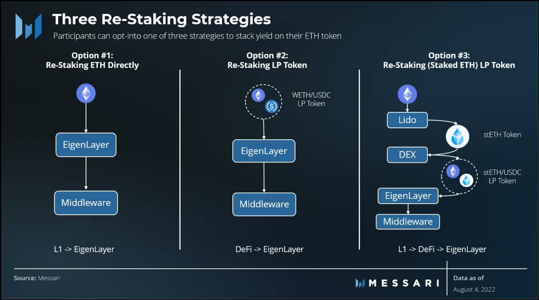 Restaking on EigenLayer | Image via XRestaking on Ethereum is gaining momentum through projects like EigenLayer, which offers innovative restaking services. Restaking allows Ethereum validators to enhance the security and functionality of other networks by restaking their assets, thereby participating in multiple protocols. One of the standout features of EigenLayer is its high data availability (DA) rate of 10 MB/s, which far surpasses Ethereum's native rate of 83.33 KB/s.