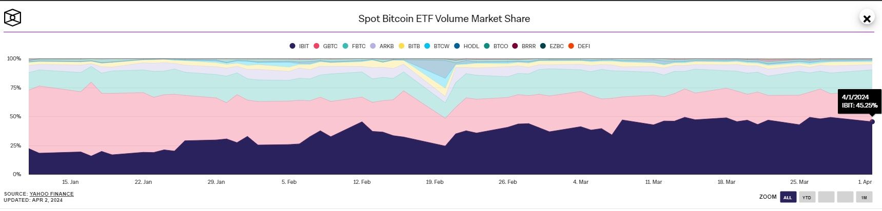 BlackRock Hold the Largest Market Share of the Bitcoin Spot ETFs. Image via The Block“Defined regulations should help other institutional, retail, and individual users enter the space.” - Mojmir Racak