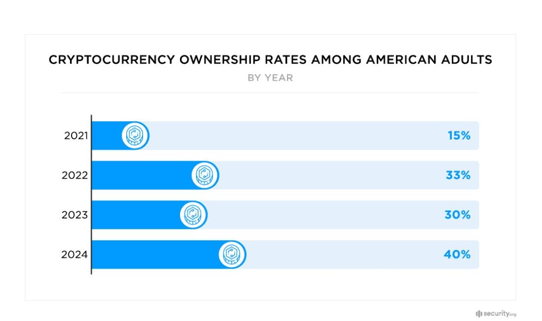 40% of American Adults Now Own Crypto. Image via Security.orgThe ideals crypto is grounded in can perhaps be summarized in two words: decentralized empowerment.