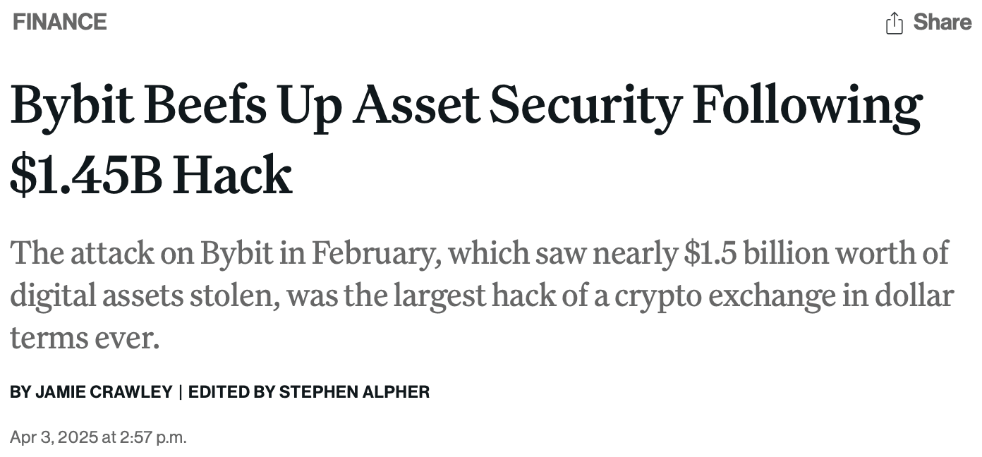 The Bybit Hack Was The Largest Hack of a Crypto Exchange Ever. Image via CoinDeskThe breach occurred during what should have been a routine cold-to-warm wallet transfer. As part of Bybit’s standard protocol, multiple signatories were required to authorise the transaction from a multi-signature Ethereum wallet. Everything appeared normal — until the funds didn’t show up in the warm wallet.