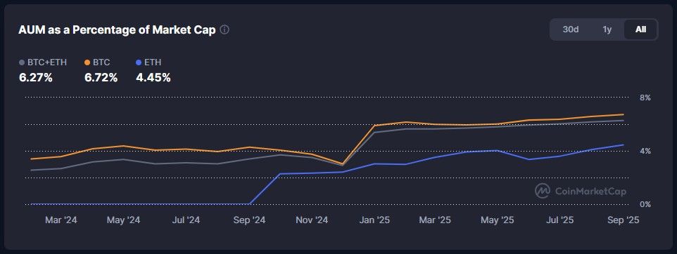 Crypto ETF’s Growing Dominance Prove They’re an Increasingly Popular Investment Vehicle | Image via CoinMarketCapThe Role of Global Market Demand & Price Dynamics