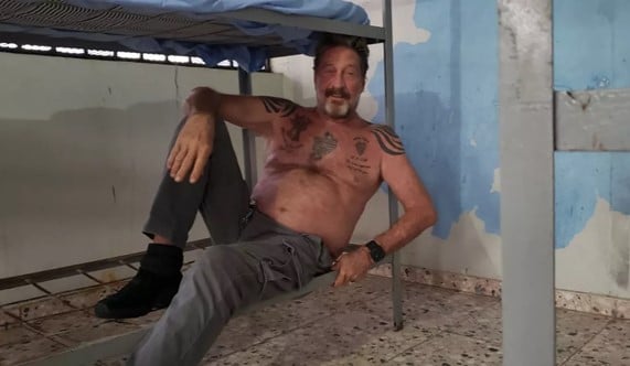 McAfee during one of his earlier stays in the big house. Image via cnet If convicted of all the charges then he could face up to 30 years in jail - not an altogether optimistic outlook for a 75-year-old. He is still an active presence on social media, posting constant updates from his cell as he awaits extradition. He compares himself to Julian Assange, rails against the US government and muses on the vicissitudes of life behind bars.