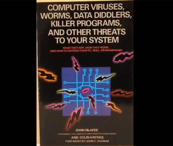 McAfee’s 1989 tome. Image via YouTube His 1989 book Computer Viruses, Worms, Data Diddlers, Killer Programs and Other Threats to Your System set out in detail his supposed concerns about the dangers facing corporate and individual computer users.