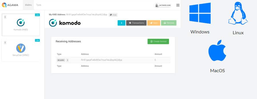This is the native wallet for Komodo, which not only helps in storing, sending and receiving KMD tokens, but also provides the perfect vehicle for staking KMD tokens to earn the 5% Active User Reward.