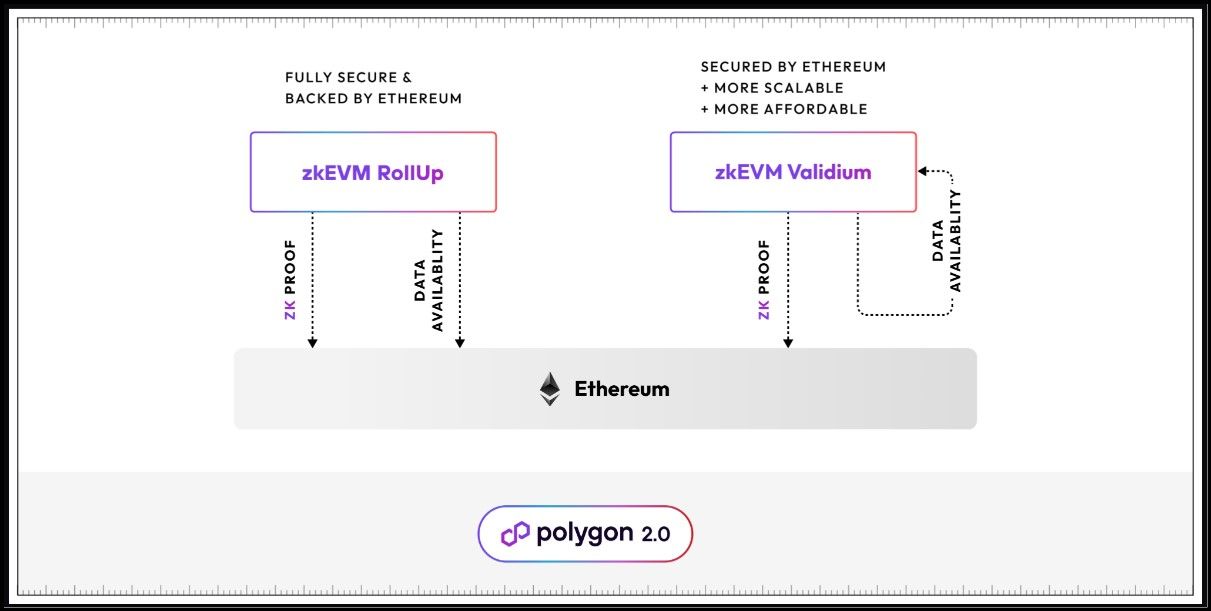 Validium is an innovative Layer 2 scaling solution that prioritizes high scalability by strategically trading off some of the security guarantees typically provided by its parent chain. A key example of Validium architecture in action is the transition of Polygon's PoS chain under the upcoming Polygon 2.0 upgrade, evolving from an Ethereum sidechain to a fully-fledged Validium system.