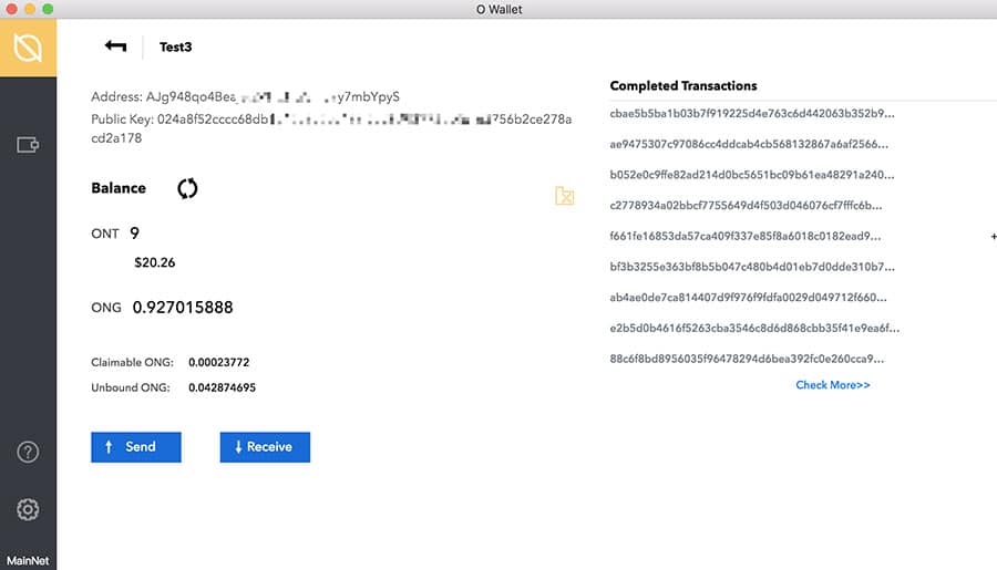 We also need to note that the ONTO wallet does have some transaction limits in place. For one thing, all ONT transactions must be a whole number, so the minimum ONT transaction is 1 ONT. In the case of the ONG utility token, the minimum transaction is 0.0000000001 ONG.