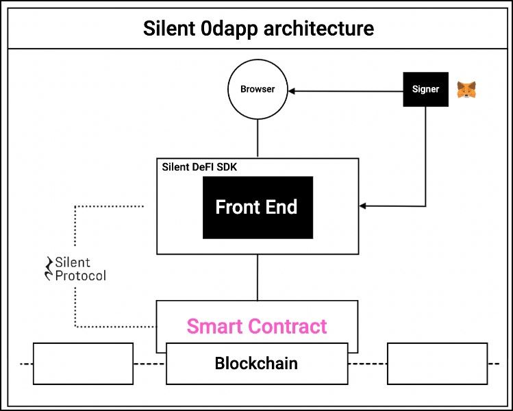 0dapps are client-facing applications built by the Silent Protocol that enable users to interact with any existing smart contracts of Dapps in a privacy-preserving manner. Users access DApps via Silent Protocol’s EZEE framework, which allows them to access the smart contract operations without revealing the user’s public address, or the fact that they used a specific DApp or smart contract.