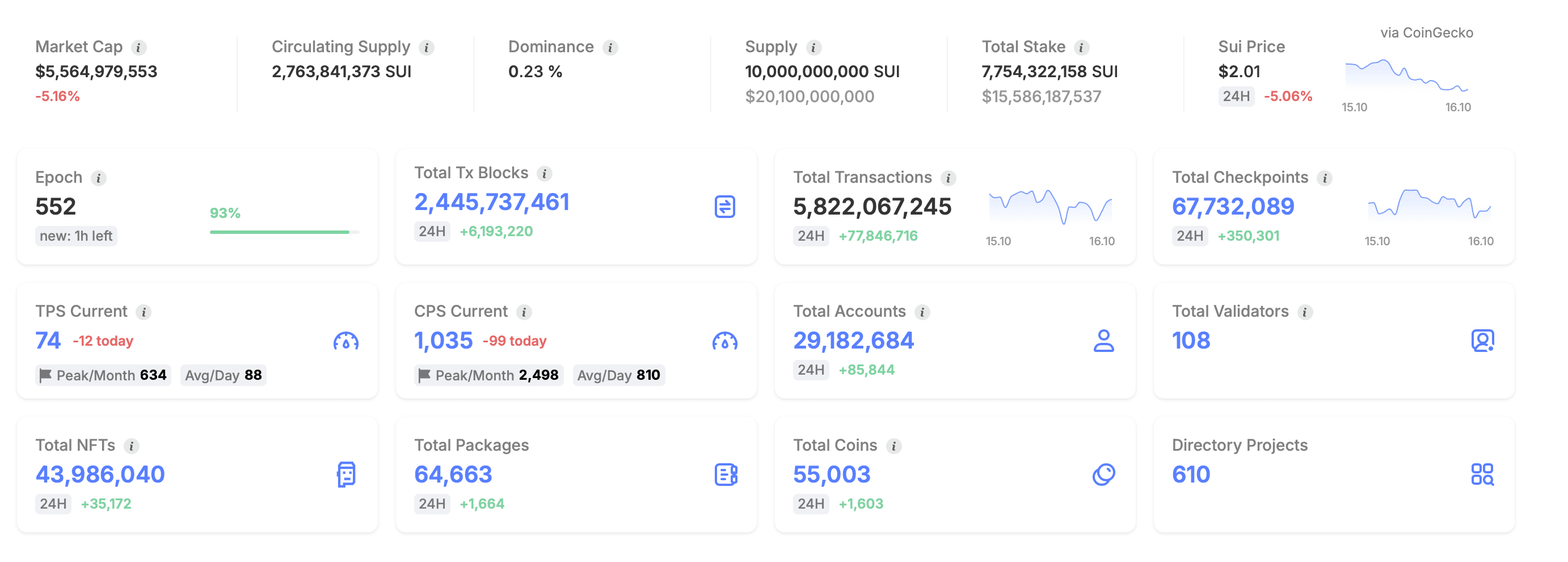 - Wallet Downloads: Sui’s native Sui wallet and Suiet wallet have a combined total of 1 million downloads.