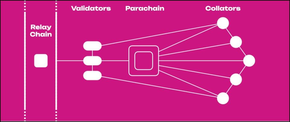 Macro View of the Cosmos Network | Image via MediumPolkadot's Parachain Framework: Polkadot uses a central relay chain in which various blockchains (parachains) can connect. This architecture allows for specialized blockchains to operate individually while benefiting from the security and interoperability of the central chain.