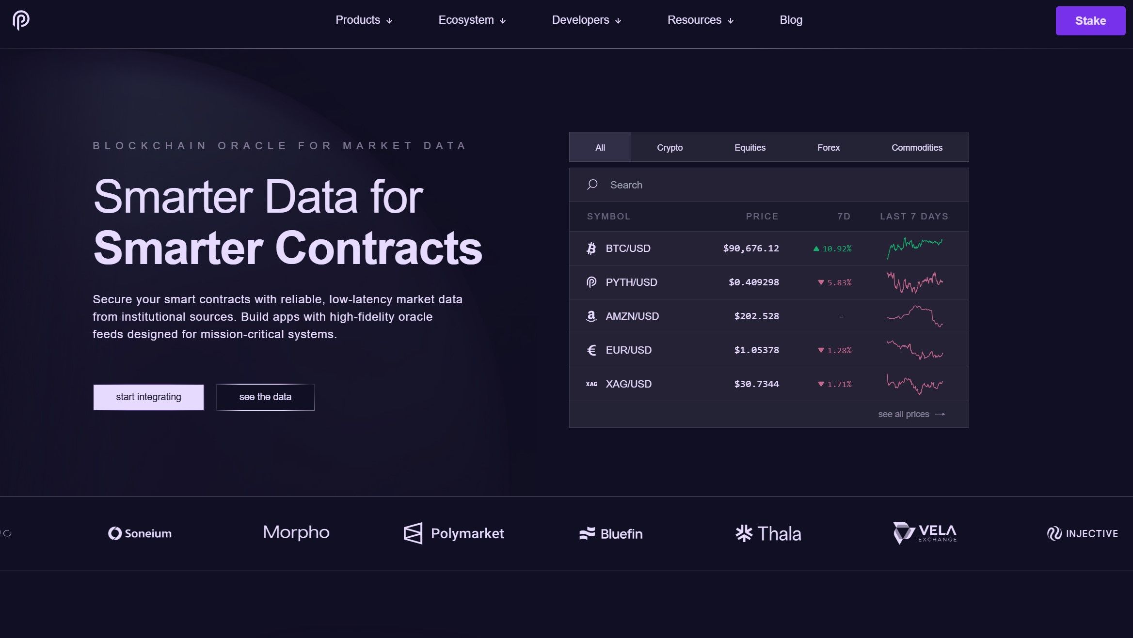 Pyth network provides real-time market data | Image via Pyth NetworkPyth Network delivers high-fidelity, high-frequency financial market data to decentralized applications. It sources data directly from trading firms and exchanges, ensuring accuracy and timeliness. Pyth's focus on financial data and its ability to provide real-time price feeds make it particularly valuable for DeFi applications requiring precise market information. Its integration with various blockchains enhances cross-chain data availability, supporting a more interconnected DeFi ecosystem.