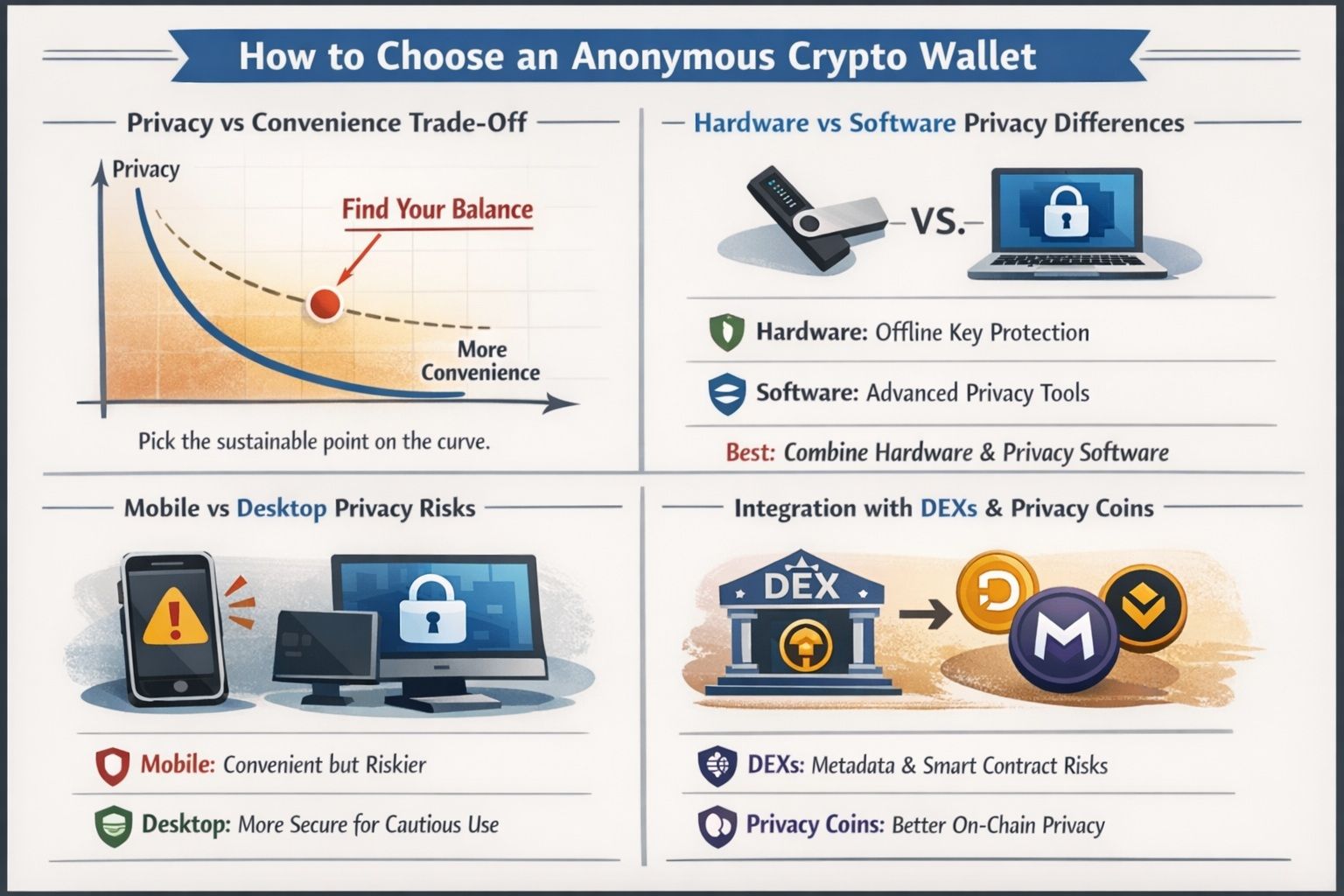 Choosing an anonymous crypto wallet comes down to how much privacy you actually need and what you’re willing to trade for it, like convenience, recovery options, and ease of use.