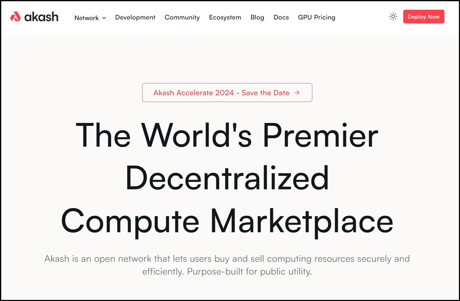 Akash Network HomepageAkash Network is a compute services DePIN project. It is a decentralized solution to centralized businesses like Microsoft Azure and Google Cloud Platform. For instance, Azure is a cloud computing provider comprising global servers providing computational resources to run programs on the cloud, such as websites, analytics, and networking.
