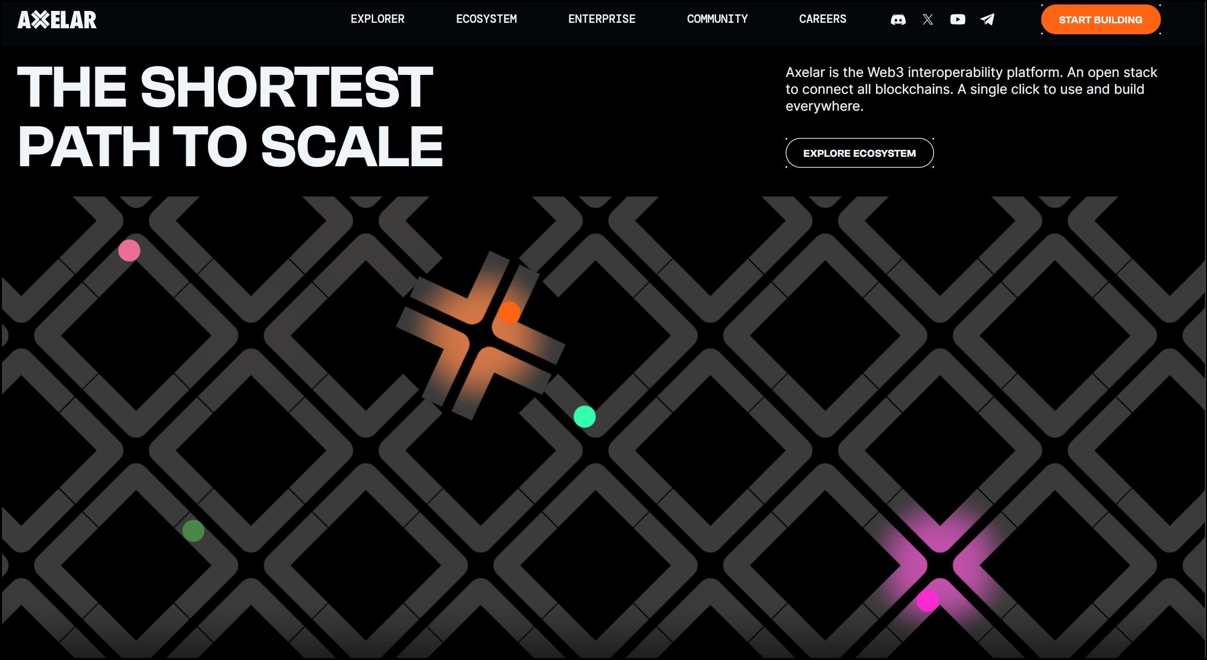 Axelar Protocol HomepageThe Axelar network, founded in 2020, harnesses Cosmos technologies to offer broad interoperability with Ethereum and other blockchain networks. Unlike typical interoperability solutions focusing only on asset transfers, Axelar delivers full-stack interoperability. This encompasses not just bridging assets but also enabling complex cross-chain functions like executing smart contracts and running decentralized applications seamlessly across different networks.