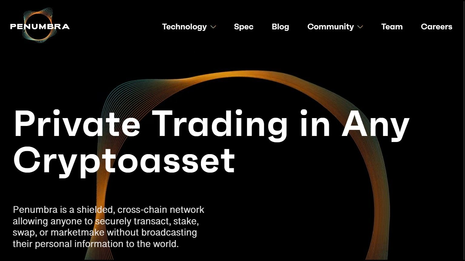 Penumbra HomepagePenumbra is a Cosmos SDK chain and a private decentralized exchange. It operates a shielded pool for private transfers, staking, and swapping of Cosmos tokens. The platform uses cryptographic encryption to conduct pool-to-pool shielded swaps. All transactions in Penumbra are private and untraceable.