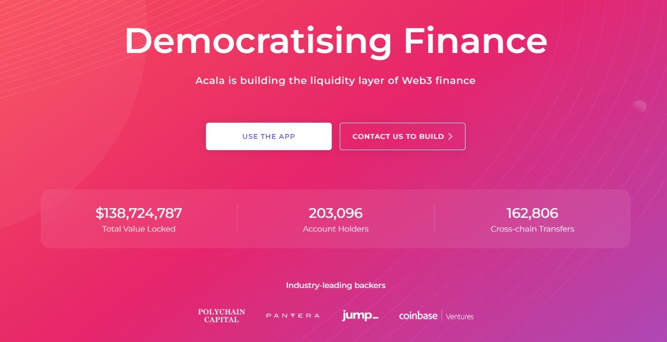 Acala is a decentralized, cross-chain blockchain that hosts a specialized stablecoin protocol. The protocol utilizes a multi-collateral-backing mechanism to create Acala Dollar (aUSD), which is soft-pegged to the US dollar.