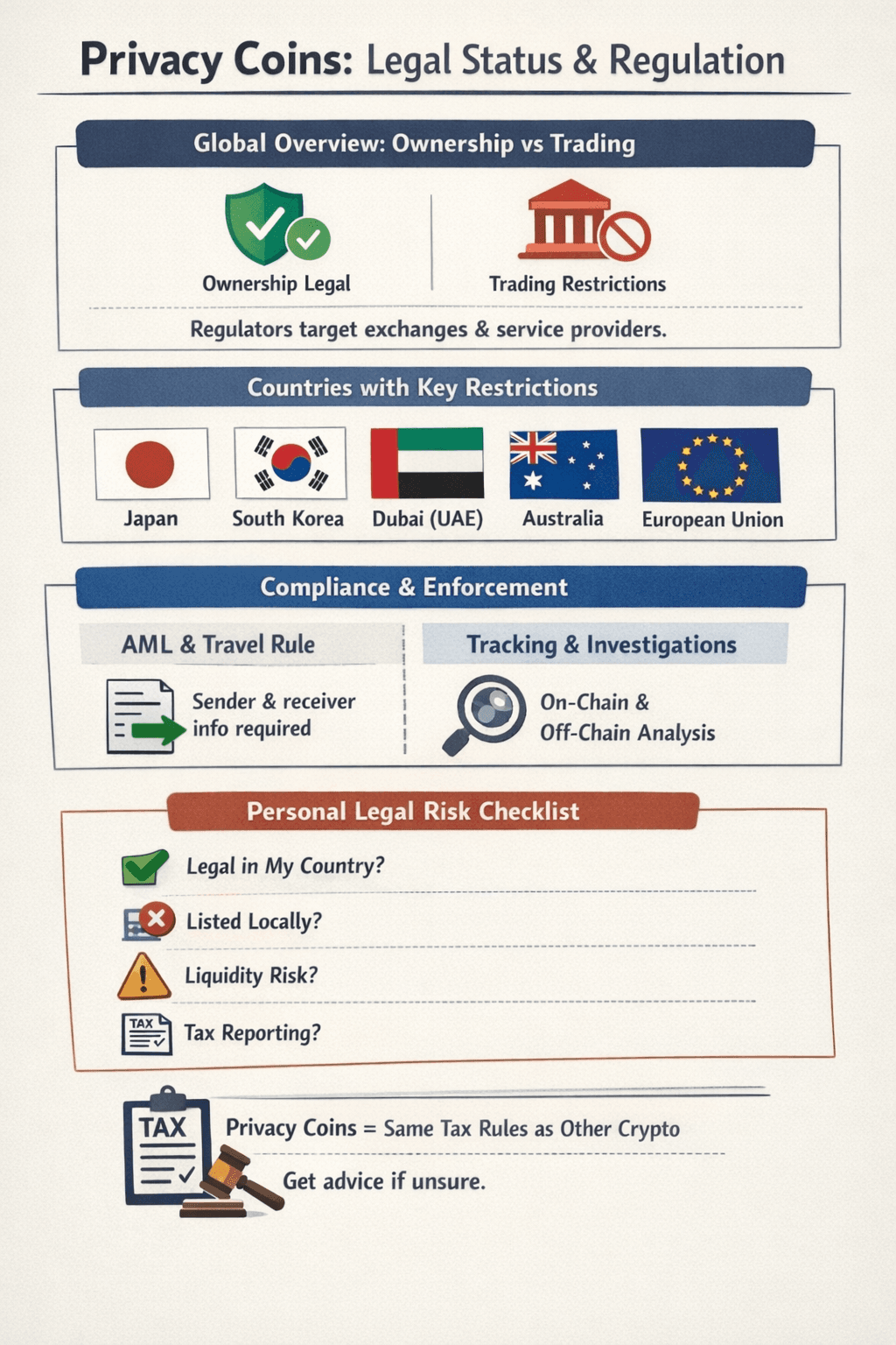 2024–2025 theme: The “privacy coin squeeze” largely plays out at the exchange layer. You can still self-custody and transact on-chain, but the on/off-ramps get narrower, more region-dependent and more volatile.