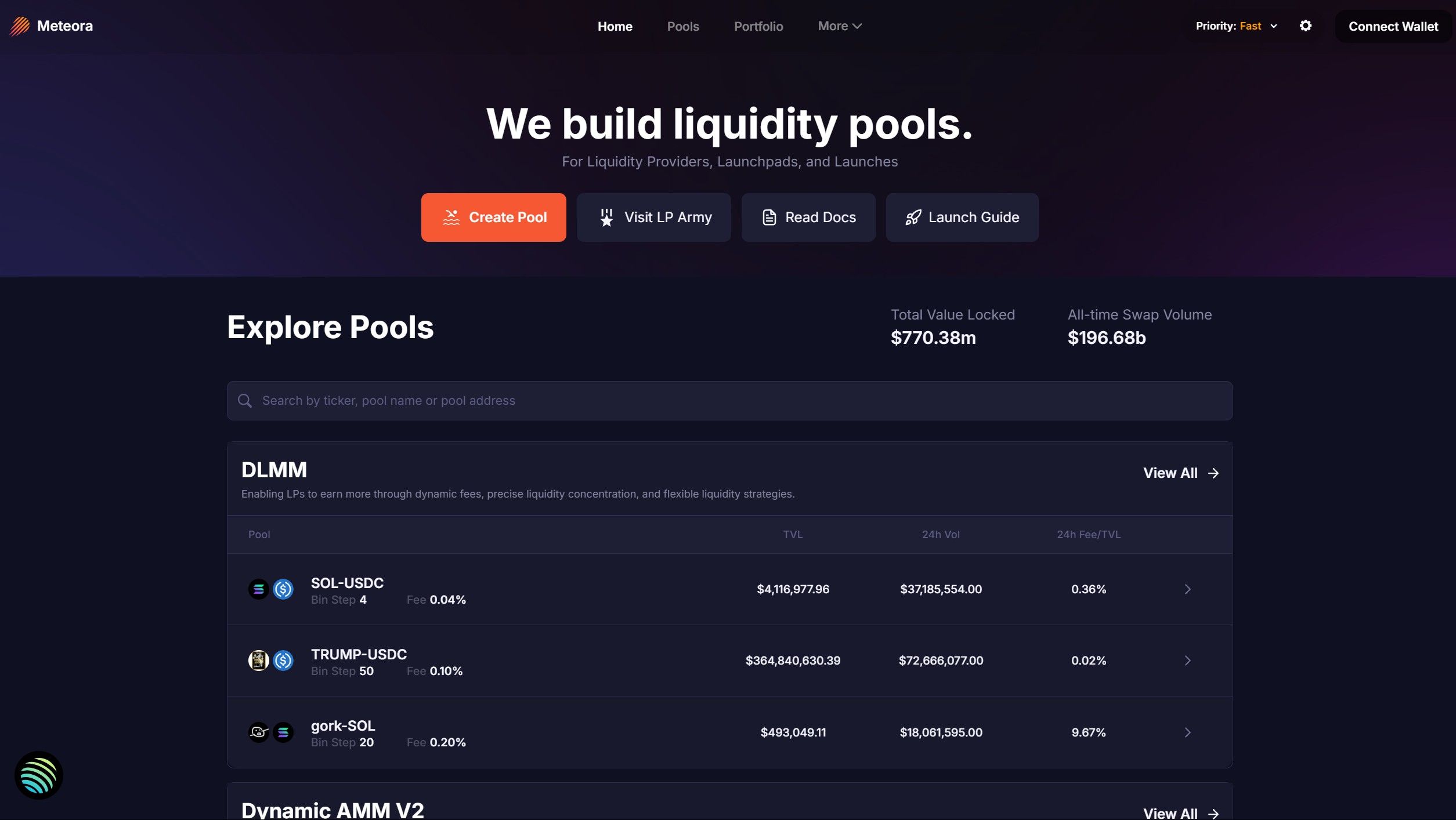 - Integrations: Meteora integrates seamlessly with various DeFi tools and protocols within the Solana ecosystem, expanding its utility and reach.