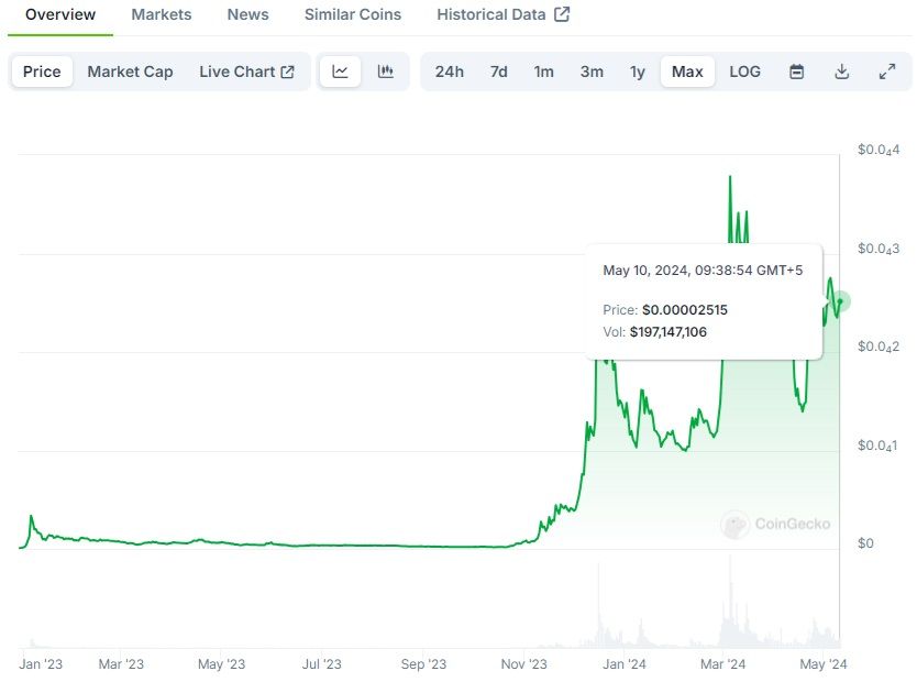 With a supply of nearly a billion tokens, it's like the treasure chest of the meme world — except there's no actual treasure inside. Proudly standing as the epitome of a meme coin, there's no burning, no staking rewards — just pure lulz.