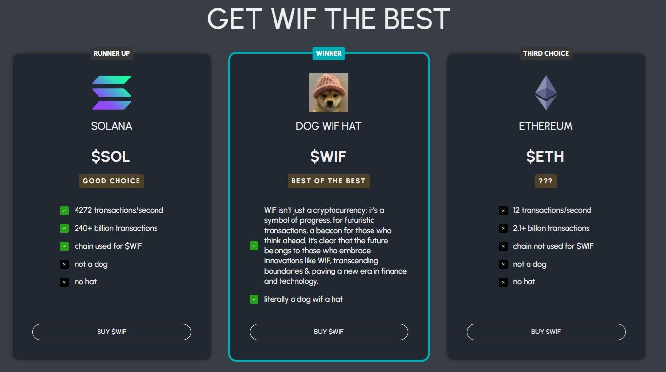WIF is Based on the Internet's Obsession With Shiba Inu Dogs. Image via DogwifcoinWith anonymous founders and inspiration drawn from the iconic Dogecoin, Dogwifhat barks to its own tune in the world of meme coins. Unlike its canine counterpart, which has some actual use cases, Dogwifhat's value is all about that speculative hype —because who needs practicality when you have memes, right?