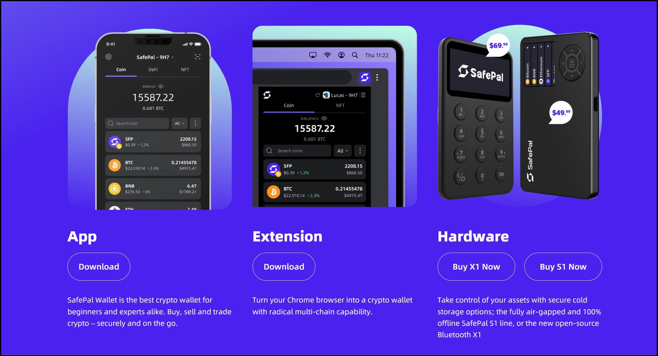 SafePal Offers a Mobile App, Browser Extension and a Hardware Wallet. Image via SafePalUser Experience: SafePal is known for its user-friendly design, simple setup, and intuitive interface. The integration of QR code-based transactions enhances security while maintaining ease of use. SafePal's hardware wallet, the S1, is compact and portable, allowing users to manage their assets securely.