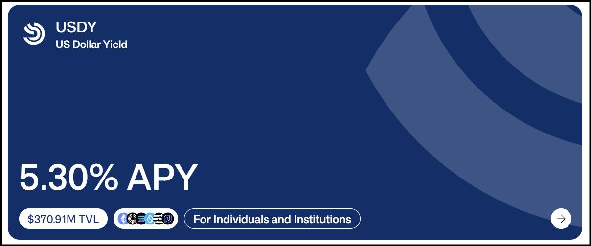 The USDY Stablecoin APY. Image via OndoUSDY is an interest-bearing stablecoin that provides access to yields from short-term U.S. Treasuries and bank demand deposits. This stablecoin is designed to pass most of the yield to its holders, with Ondo charging only a small fee for operational expenses and redemptions. USDY offers daily redemptions and can be transferred freely to users on a secondary allowlist after a holding period, promoting greater accessibility to institutional-grade yields.