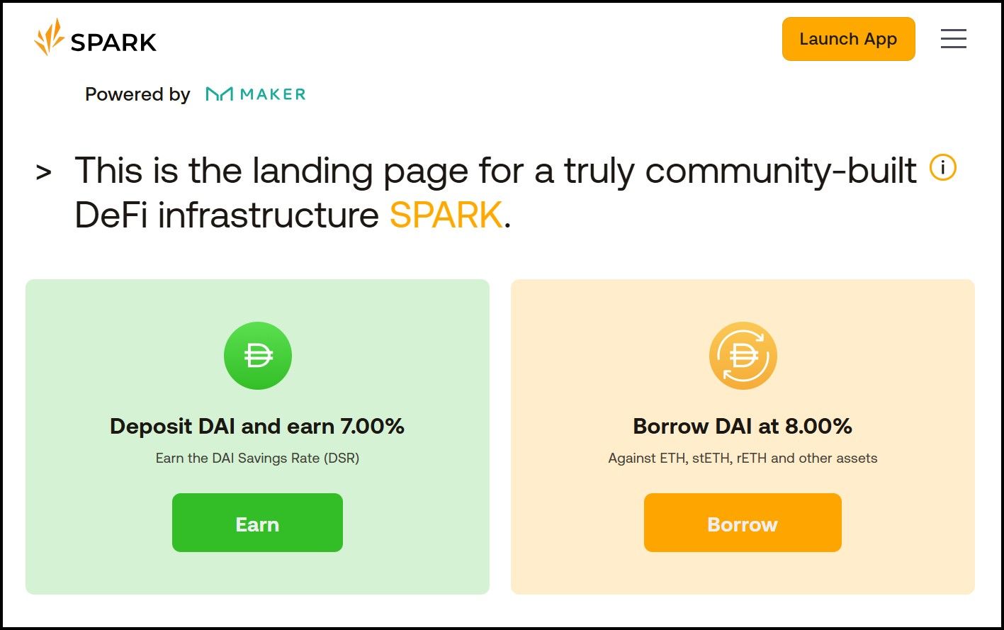 Launched on May 9, 2023, the Spark Protocol is a new addition to the Maker ecosystem, serving as a front-end protocol for lending and borrowing assets. It also introduces the sDAI Yield Bearing Stablecoin, leveraging the DSR to create an ERC-4626 vault token called sDAI.