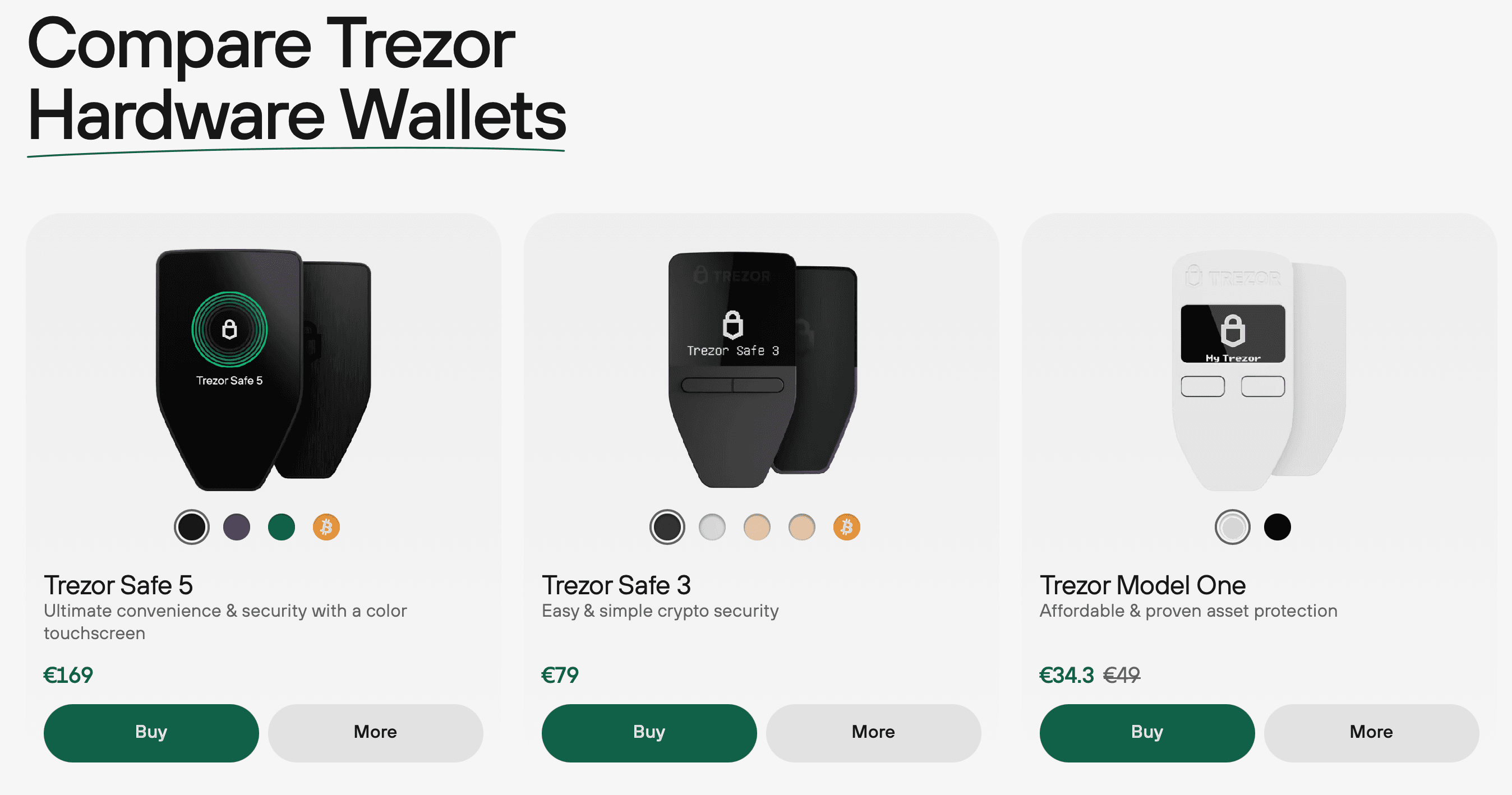 Trezor Has Several Models With Different Features and Price Points. Image via TrezorTrezor Price Range