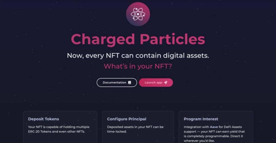 Charged Particles Encapsulates Interest-Bearing DeFi Tokens Within NFTs - Image via Charged.Fi Charged Particles is a decentralised protocol that is fundamentally restructuring the DeFi-NFT ecosystem, by allowing users to wrap their native NFT assets with interest-bearing tokens. Charged Particles enables NFT holders to deposit their ERC-721 or tokenised NFT fractions into its dApp, which then wraps the NFT with interested-bearing tokens through its integration with DeFi protocol Aave. This constitutes a true representation of the growing demand for NFTs in the DeFi sphere, and is also symbolic of the shared, hybrid infrastructure that is developing between DeFi and NFTs.