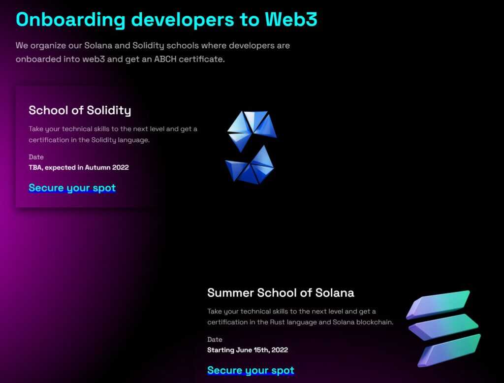 Some of the Courses Offered by Ackee Blockchain.The team offers summer schools online where they teach Solidity, and in the fall of 2022, Ackee Blockchain CEO and Co-founder Josef Gattermayer, Ph.D. will be teaching topics around blockchain development at the Czech Technical University in Prague. It is definitely worth reaching out to the Ackee team, registering for the courses on their site, and following them if you are interested in a future in blockchain development and security.