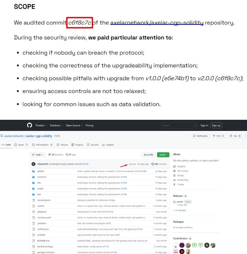 If you notice a new commit hash that is different to when the audit was conducted and see something like this: