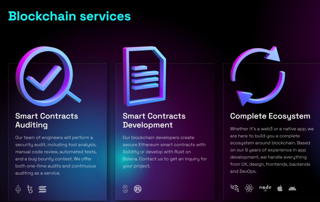 While other auditing companies like Ackee Blockchain can also meet more “full-service” requirements and help in additional areas such as: