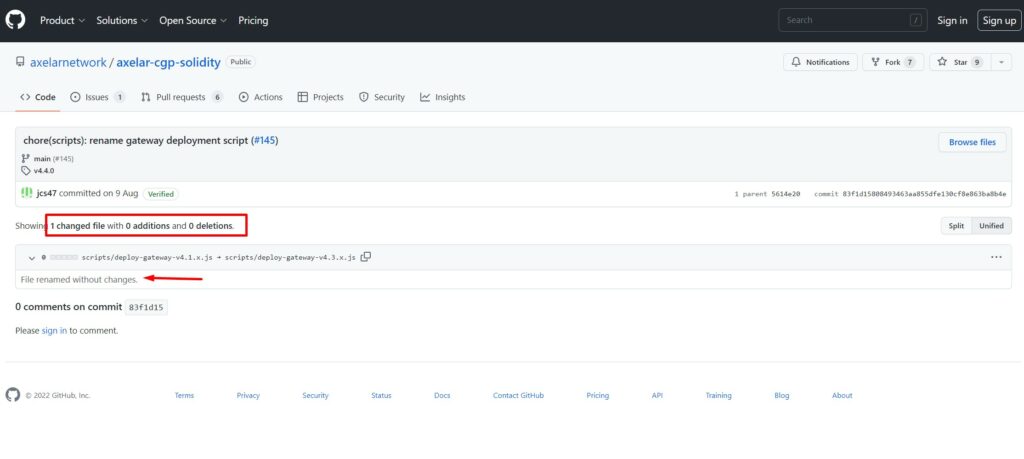 That is one of those insignificant changes I mentioned, and though it populated a new commit hash, it isn’t anything to be concerned about as this was a simple renaming of a file. The GitHub image above shows 0 additions and 0 deletions.