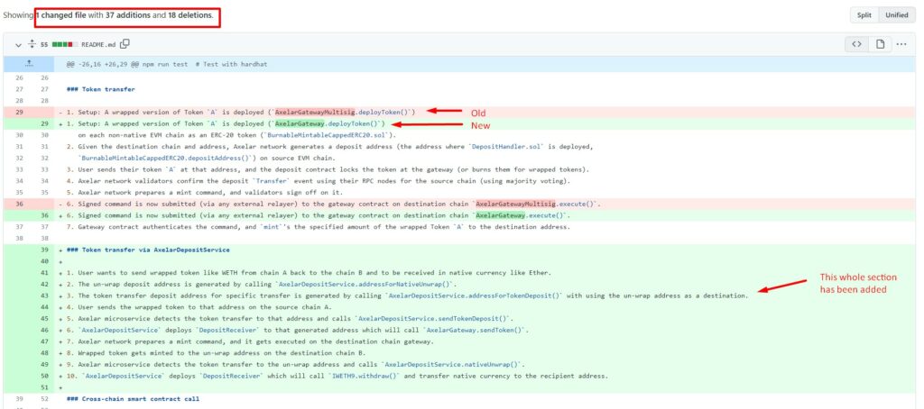 If you have an analytical eye and want to dive in deeper, you can click into each new commit hash and compare the old code shown in red with the new code shown in green and verify for yourself what exactly has changed: