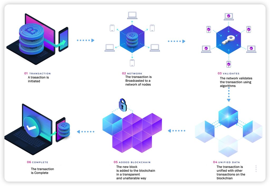When you send a crypto asset to a wallet or an exchange, for Proof-of-Work-based assets like Bitcoin, the transactions need to go through a network/blockchain/Bitcoin miner.
