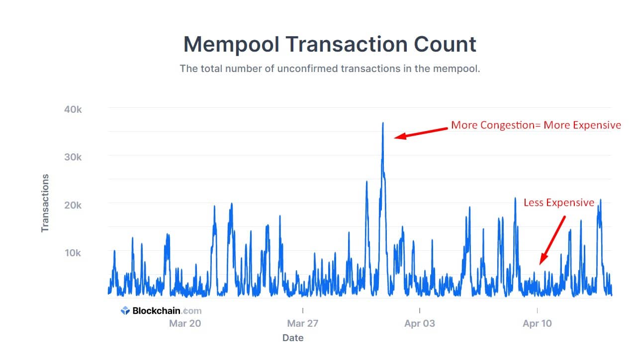 The main factor contributing to high fees for Bitcoin and Ethereum is network congestion when you are trying to send a transaction. The more people try to use the network at once, the higher the fee will be. Take a look at how the Ethereum network spiked during the previous bull run, forcing Ethereum users to pay fortunes if they wanted to play in the Ethereum playground.