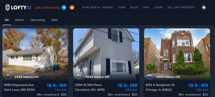 As the name implies, Lofty AI uses AI technology to vet properties for investors to invest in. The long and short of it is that: