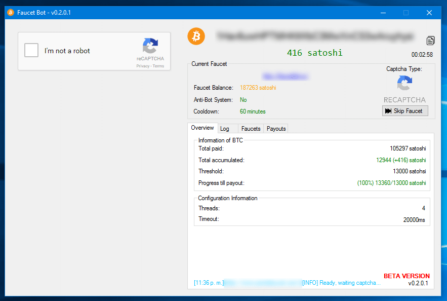Example of Crypto Faucet Bot. Source: bitcointalkAn auto faucet is a type of bot that finds its way from site to site, but just visiting the faucet site isn’t the best way to earn. In fact, you might not even earn 1 Satoshi a day by using an automated faucet bot. Currently it takes roughly 6,600 satoshi to equal 1 dollar.