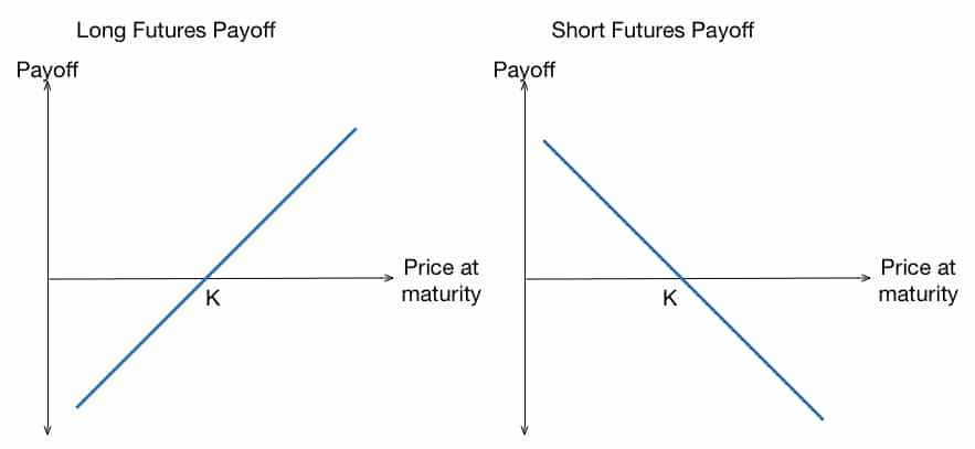 Below is a simple graph of a futures contract. As you can see, there is unlimited upside on the position but there is also unlimited downside. You can either be long or short the futures contract.