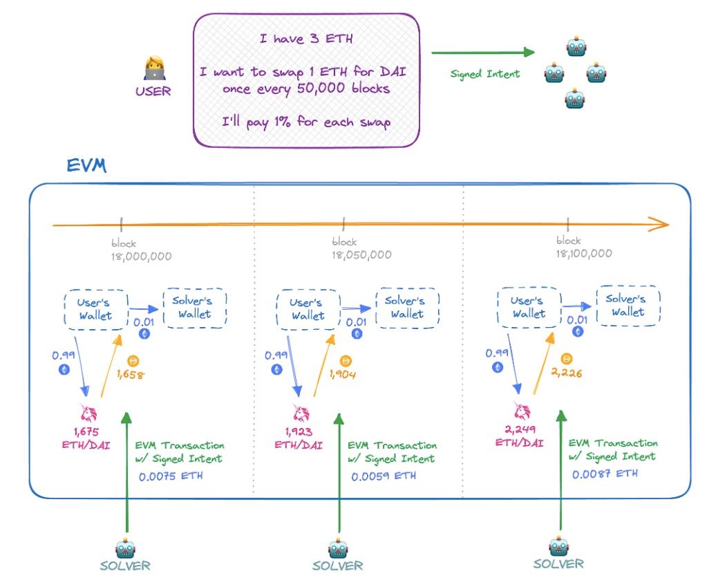 Caption: Image via ParadigmIntents are gaining popularity and are a part of broader UX improvements, including account abstraction. They empower users to define on-chain outcomes and delegate the technical work to third-party solvers. Ultimately, this abstraction layer will make Web3 apps as user-friendly as traditional apps, reducing the steep learning curve and attracting millions of new users. This shift towards intents means future users won't need to worry about technical tasks like transaction submissions and managing network fees. In essence, intents are declarative expressions of "what" users want to happen, rather than prescriptive instructions on "how" it should happen.