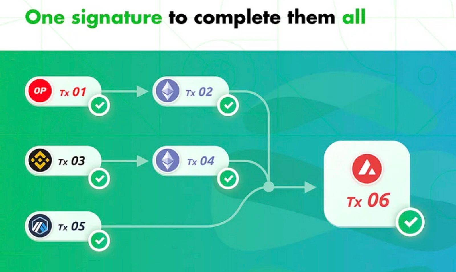 dappOS V2 enables users to validate intricate, interconnected transactions spanning various chains using a single signature, whether they occur sequentially or simultaneously.