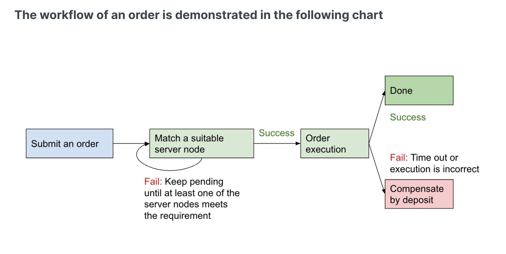 As users submit requests, the Super Node will assign them and the Server Node will return the request to the user after it is completed. If the Server Node cannot execute, the Super Node will use the funds staked by the Service Node to compensate the user.