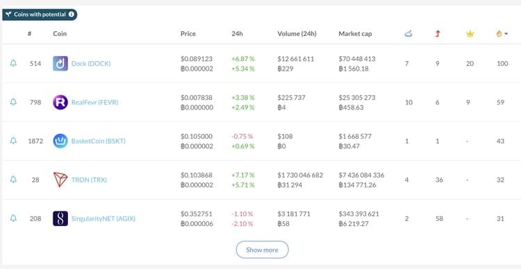 Another fun and potentially useful feature for traders is the coins with potential ranking. This calculates the number of events and votes to see which coins might be taking off from these events. I didn’t find any statistics of how many of these coins actually take off but that might be something you want to look into if trading is what you like.